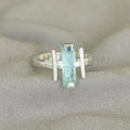 The bar design adds a contemporary twist, making it perfect for those who appreciate modern and unique jewelry. Whether worn alone or stacked with other rings, this Aquamarine Ring is sure to turn heads and make a statement. Experience the allure of the ocean with this exquisite piece that exudes elegance and individuality.