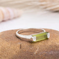 A sleek and modern peridot bar ring featuring a vibrant green gemstone in a minimalist setting—perfect for adding a fresh pop of color to your everyday style.