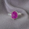 The ring shown is for photography purposes. Your ring will have a unique raw ruby shape, but the quality and color will remain consistent.